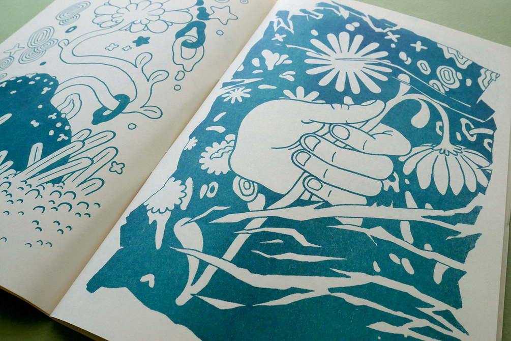 32 pages / 1-color risograph printed / teal on cream paper/ 8.5" x 5.5"